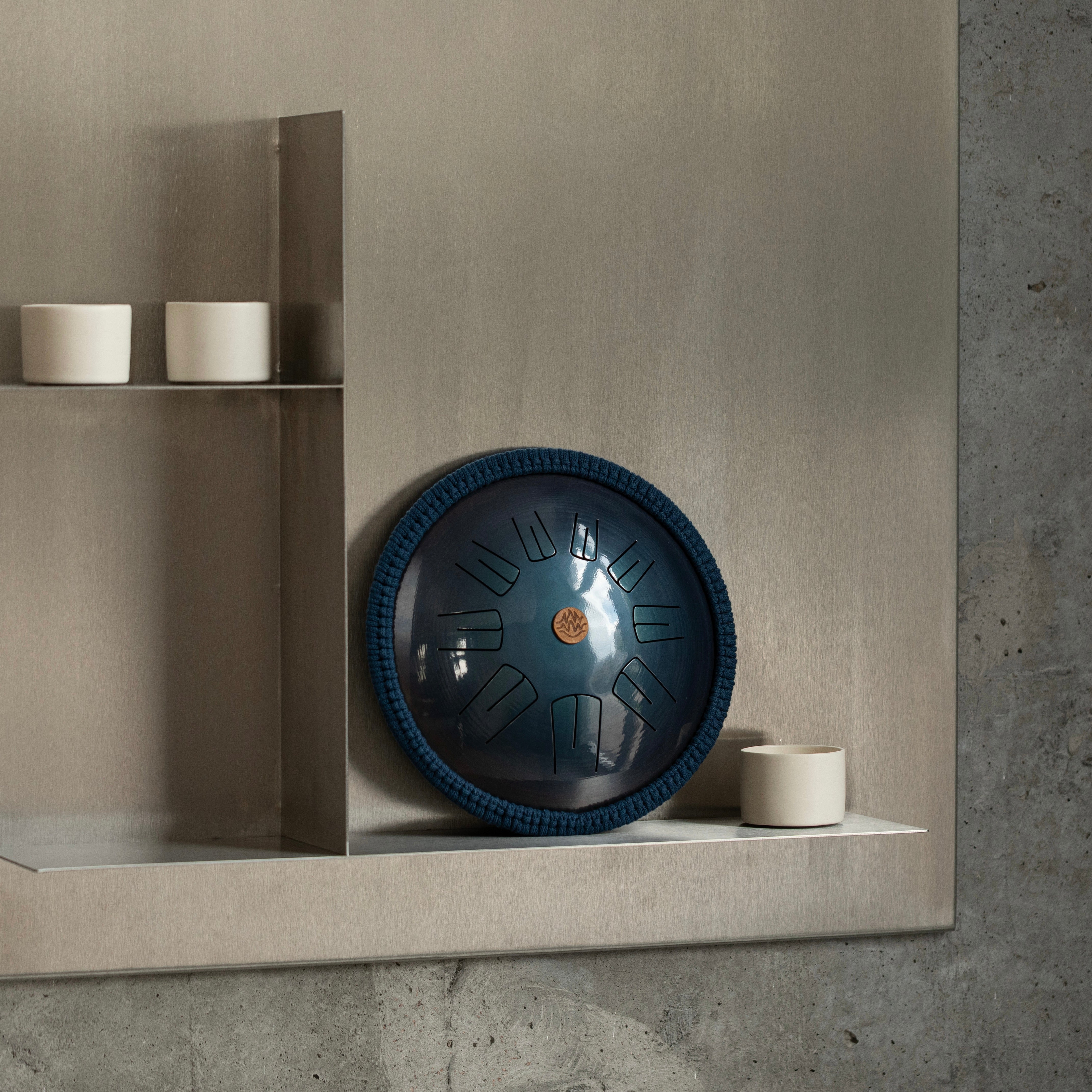 Handpans are made of thin steel (up to 1.3mm) and have embossed tonal fields with a soft sound. Tongue drum can be made of steel up to 3mm and has cut tongues, which have a clearer sound.